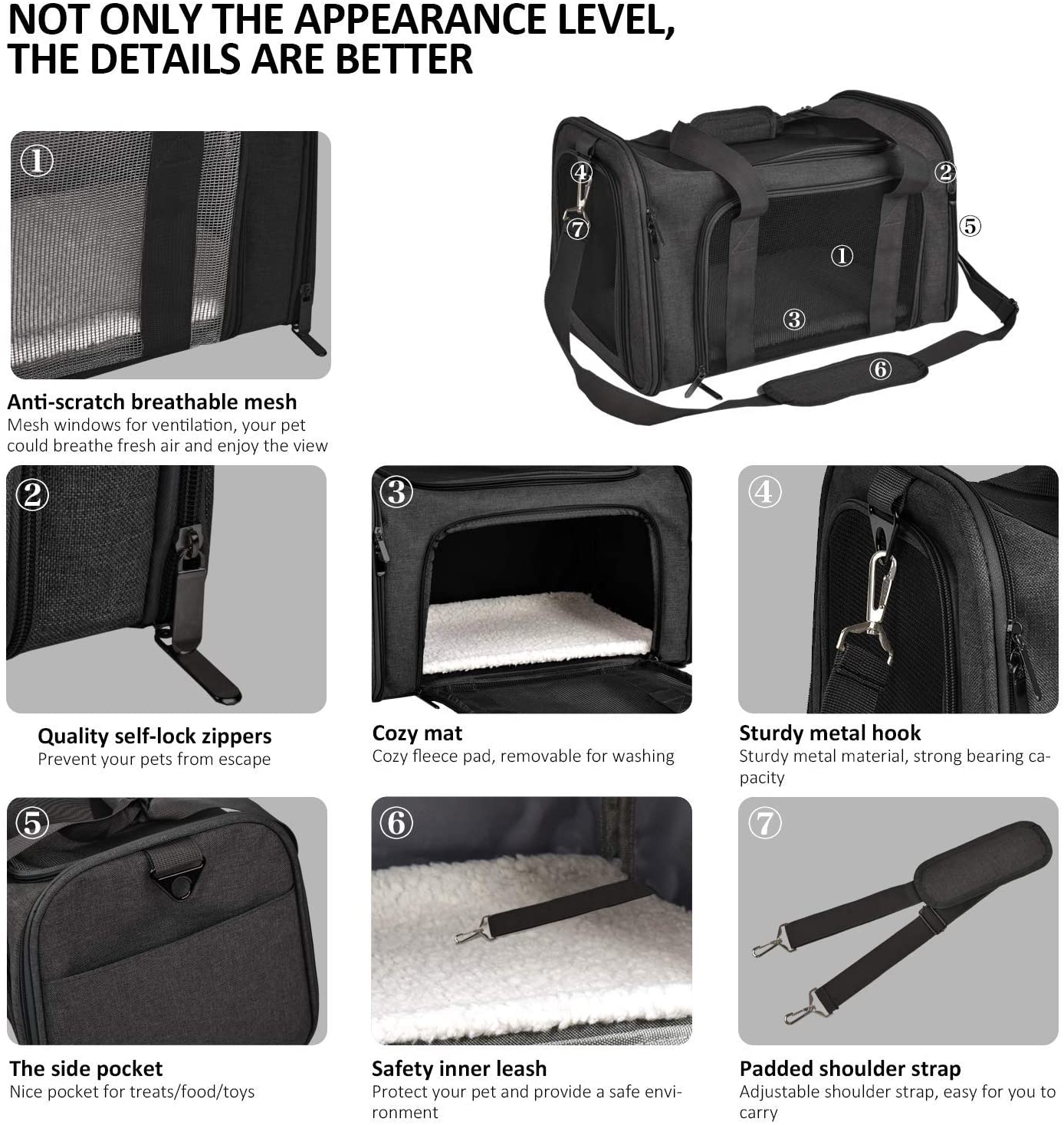 Pet Bag with Mesh Windows and Fleece Padding Collapsible Dog Carrying Case with adjustable shoulder strap
